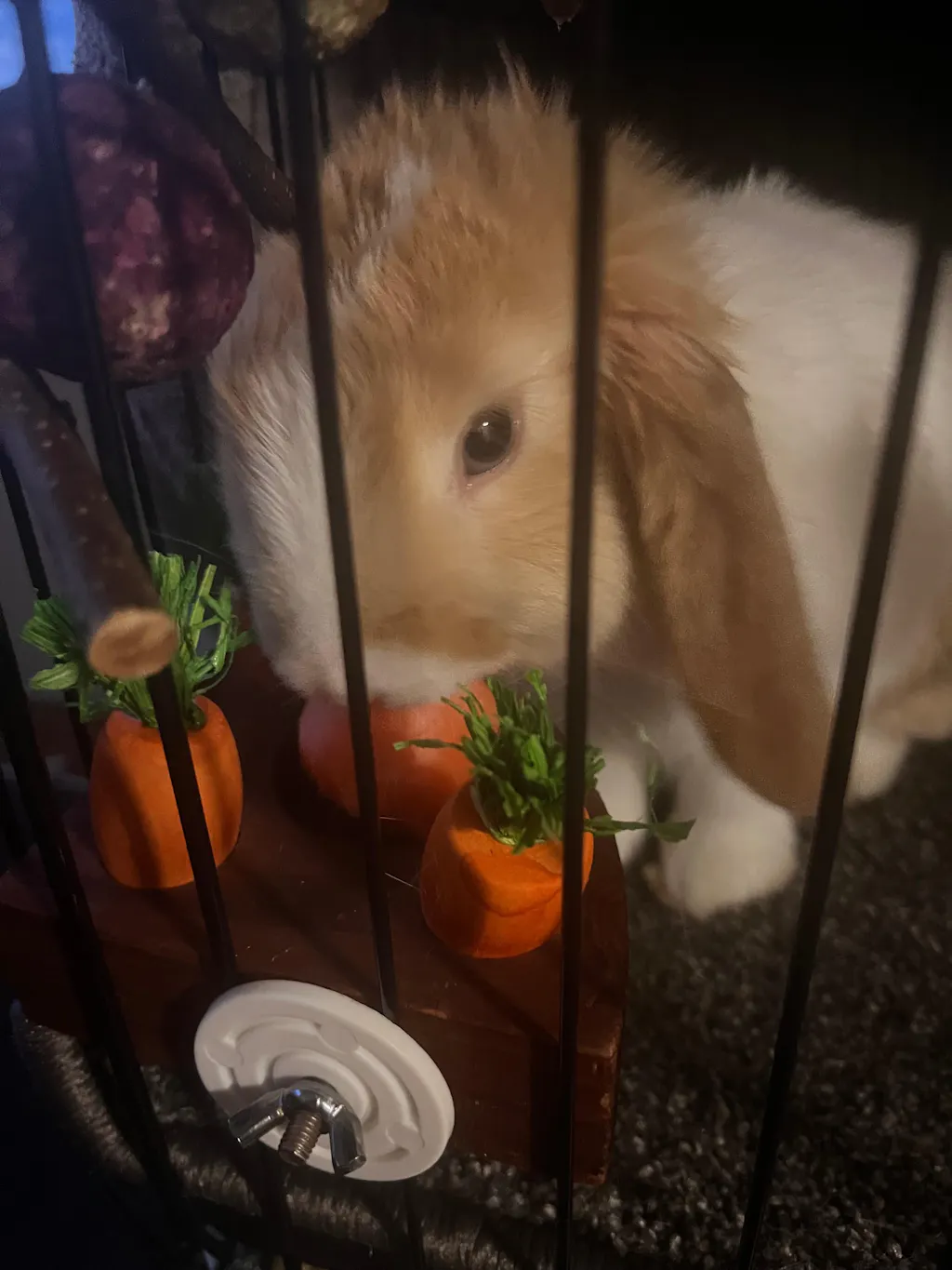 🥕 Interactive Design – Removable wooden 'carrots' for playful foraging and gnawing